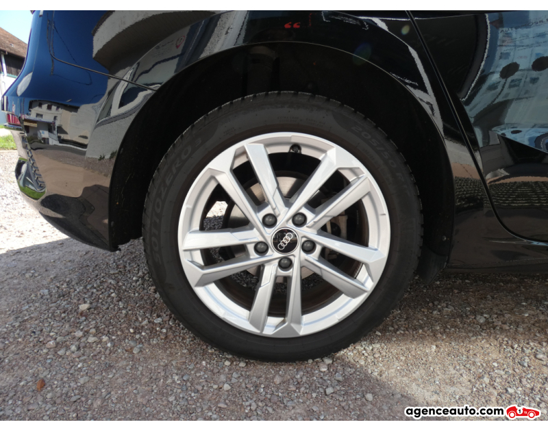 Intérieur raffiné : Sièges en tissu, Audi Virtual Cockpit 10,25", écran MMI 10,1" tactile, climatisation bi-zone, et éclairage d’ambiance personnalisable.