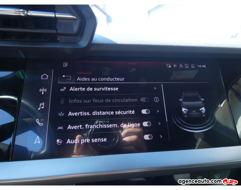 Sécurité optimale : Audi Pre Sense (freinage d’urgence), maintien de voie, et 5 étoiles Euro NCAP.