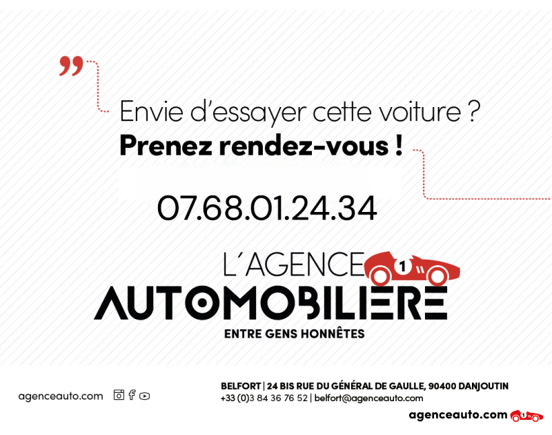 Votre Agence Automobilière propose des Garanties Commerciales de 3 à 60 mois* (voir conditions en agence et sur le site). La garantie légale de conformité ne s’applique pas dans une vente entre particuliers. Détail des conditions générales de souscription délivré en Agence ET préalablement à la conclusion de la vente. Nous sommes agréés SIV et pouvons réaliser votre carte grise directement à l'agence.